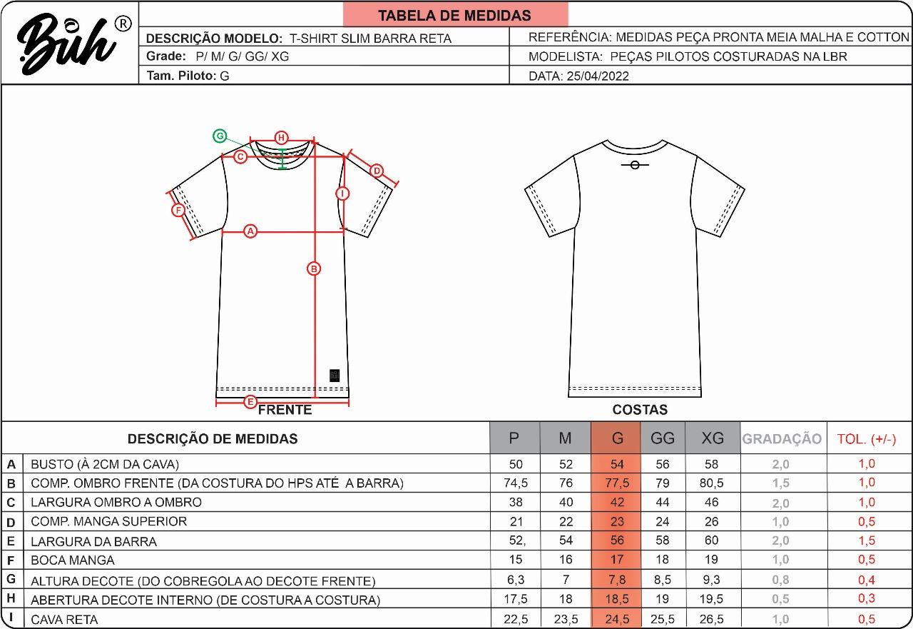Dica: Meça uma peça que você já tenha para comparar com nossa tabela e escolher o tamanho ideal.
